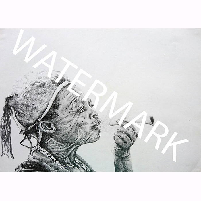 KHOISAN SMOKER ARTWORK A3 LIMITED EDITION PRINT Art drawn by Cheri Art, graphite on paper (custom artwork on request)